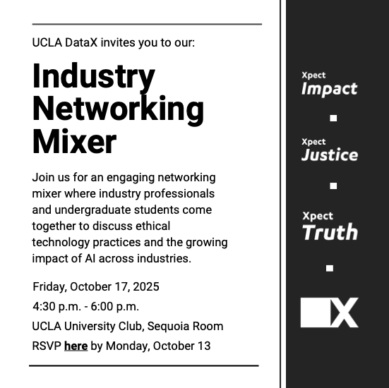 Please RSVP here: UCLA DataX Industry Networking Mixer RSVP (closes Monday, October 13)